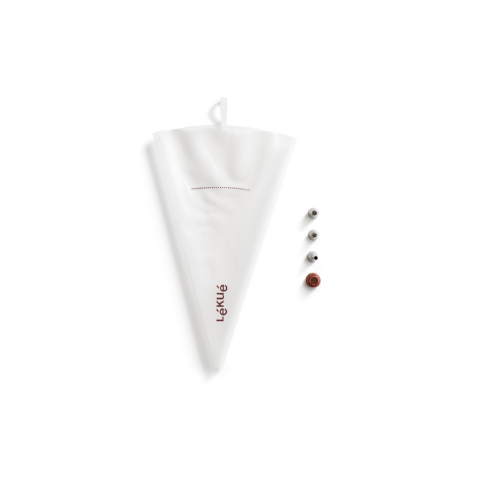 - Lékué set za ukrašavanje deserata – višekratna TPU vrećica za torte, mafine i profiterole, sa 3 nastavka i spojnicom, periva u mašini za suđe, ekološki i praktičan kuhinjski alat