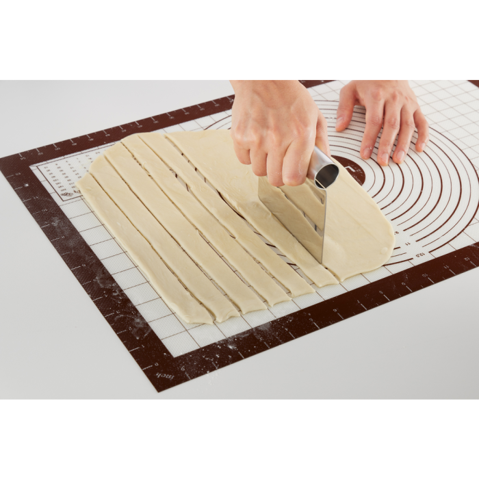Precizno pripremanje tijesta – mjerni prstenovi, rubni linijar i mreža za kvadrate ili trakice omogućavaju savršeno oblikovanje tijesta