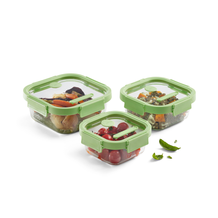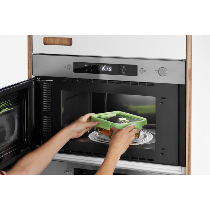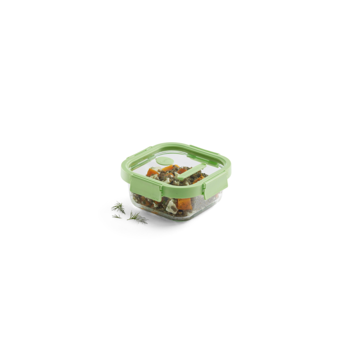 - Staklena posuda za hranu 0.8 L – nepropusna, sa ventilom i poklopcem, za frižider i mikrovalnu